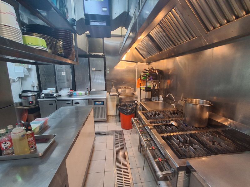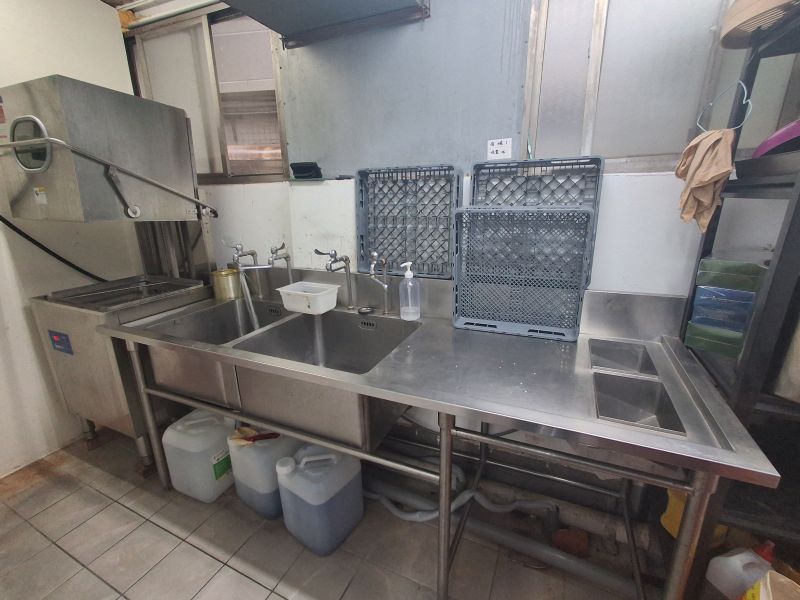上凍下冷雙層冰箱*1 ; 8排上烤箱*1 ; 六口西餐爐*1 ; 落地油炸爐*1 ; 不鏽鋼洗碗槽*4 ; 廚房不銹鋼吊架*1 ;