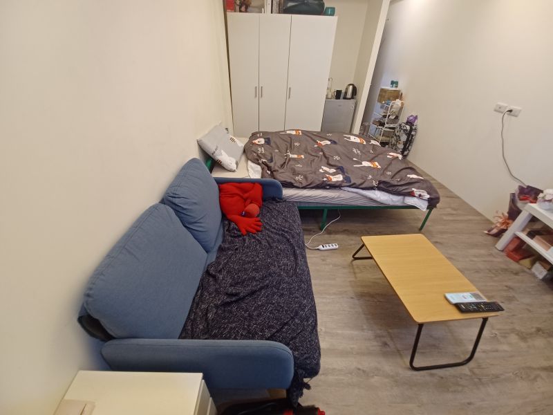 床/冷氣/附家具電/沙發/冰箱/網路/第四台/淋浴/窗簾/洗衣機/電視/電熱水器/無電梯(爬樓梯)/衣櫥