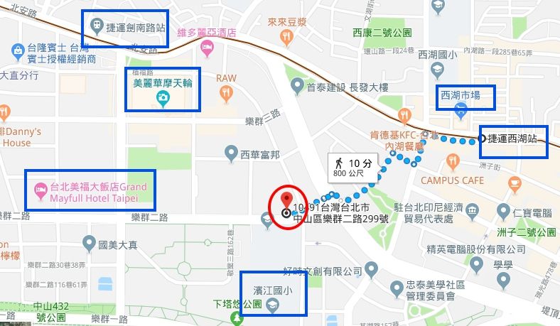 捷運─西湖站google說步行約10分鐘、劍南路站